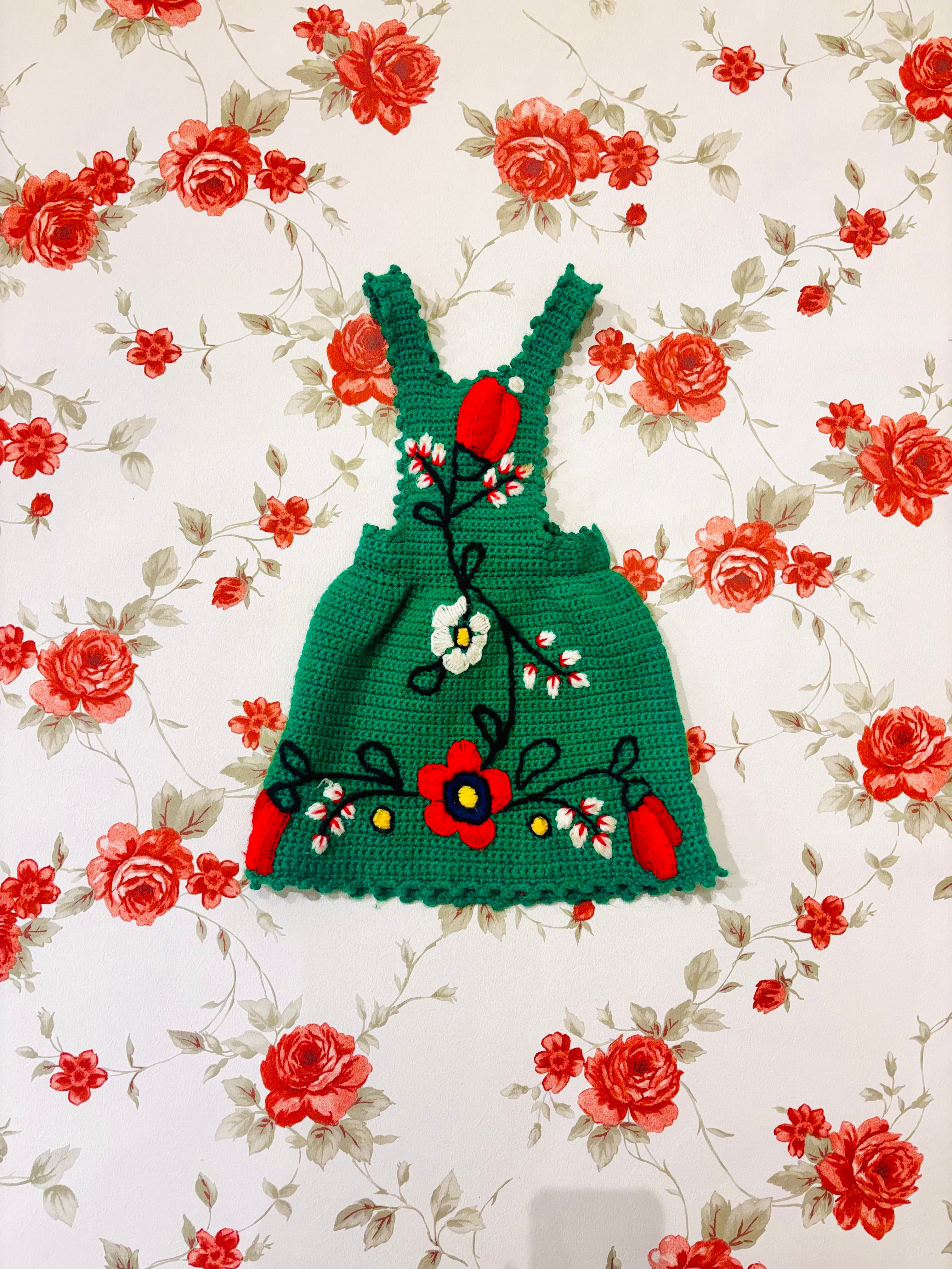 【KIDS vintage】 crochet jumper dress. about 3-4y