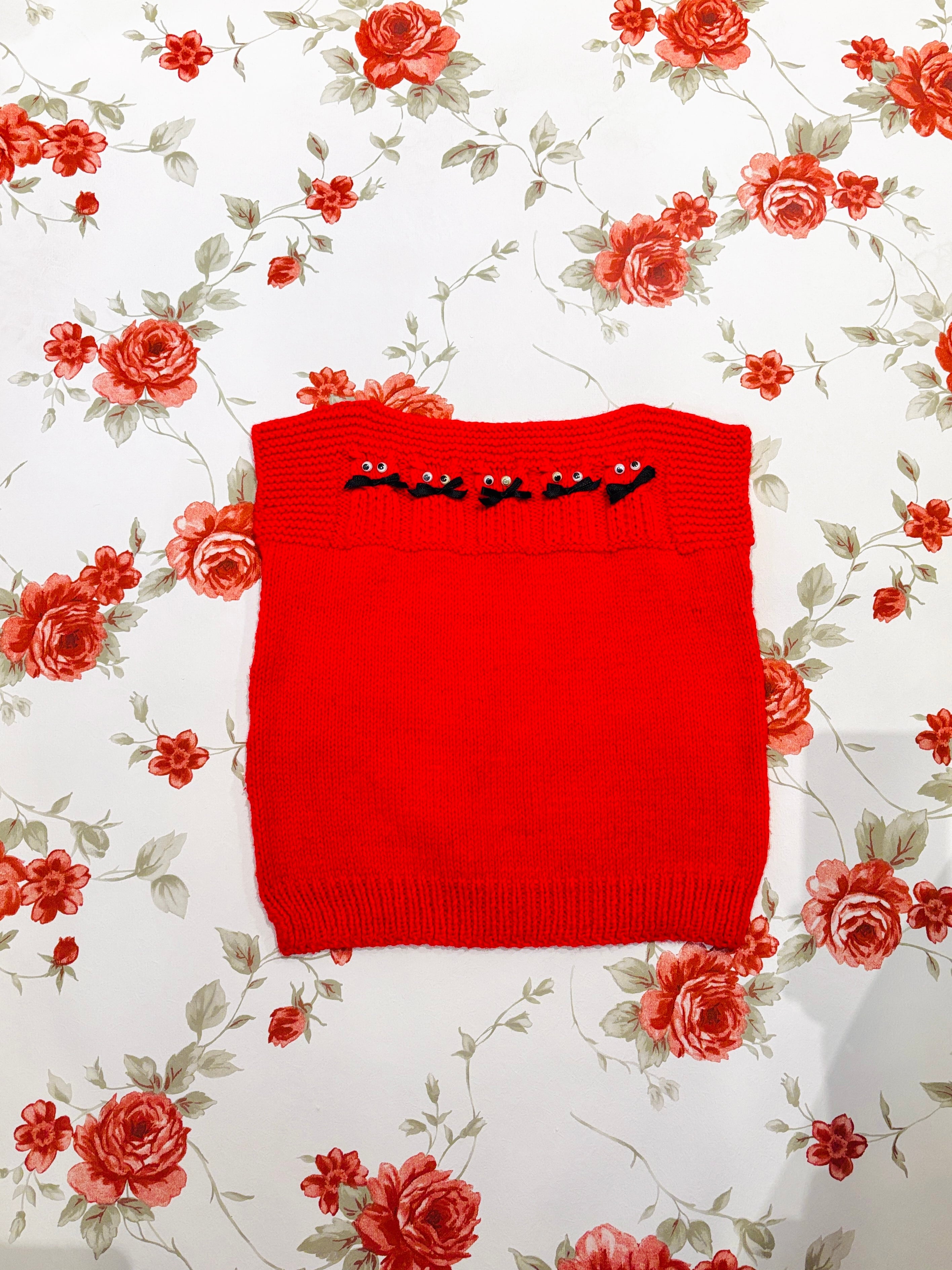 【KIDS vintage】cat knit vest . about 4-8y